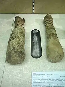 Paleoradiology (ancient radiology) is the study of archaeological remains through the use of radiographic techniques, such as X-ray, CT (computer tomography) and micro-CT scans.[1] It is predominately used by archaeologists and anthropologists to examine mummified remains due to its non-invasive nature.[2] Paleoradiologists can discover post-mortem damage to the body, or any artefacts buried with them, while still keeping the remains intact. Radiological images can also contribute evidence about the person's life, such as their age and cause of death. The first recorded use of paleoradiology (although not by that name) was in 1896, just a year after the Rōntgen radiograph was first produced.[3] Although this method of viewing ancient remains is advantageous due to its non-invasive manner, many radiologists lack expertise in archeology and very few radiologists can identify ancient diseases which may be present.[4]