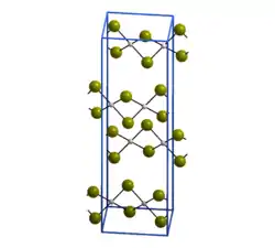 The structure of PdBr2 has been determined by X-ray crystallography.[2] It crystallises in the P21/c space group and the structure consists of wavy ribbons of edge-sharing PdBr4 coordination squares.[3]
