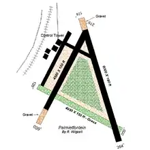 There were three runways, the relative positions of which formed a triangle. Runway 17/35 was the longest, being 6,000 ft long (1,800 m) and 180 ft wide (55 m). Runway 04/22 was 4,500 ft in length (1,400 m) and runway 13/31 was 4,950 ft long (1,510 m). Both 17/35 and 04/22 were tarred; 13/31 was grass. The apron and control tower were situated to the west of runway 04/22. The airport elevation was given as 5,107 ft amsl (above mean sea level) (1,557 m). The information is derived from an old map and airport layout diagram courtesy of E. Du Plessis.[2][3]