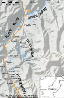 Map of the region in Pakistan where the Palula language is spoken