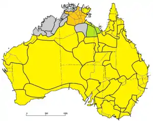 ![]() Pama–Nyungan languages (yellow) Other Macro-Pama–Nyungan (green and orange) | |