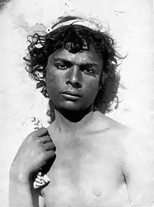 When Wilhelm von Gloeden arrived in the hilltop city of Taormina overlooking the Ionian Sea, he engaged the services of a local boy, Pancrazio Buciunì, named after Pancras of Taormina. The fourteen year old was already extremely handsome, with dark skin and large eyes. Von Gloeden nicknamed him "Il Moro" (The Moor) because of his Arabic heritage.[3] Il Moro first became one of von Gloeden's models, then assistant, pupil and eventually lover.[4]