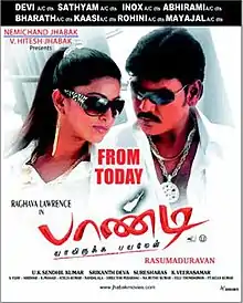 Pandi is a 2008 Indian Tamil-language masala film written and directed by Rasu Madhuravan. It stars Raghava Lawrence and Sneha in the lead roles, while Namitha, Nassar, Saranya Ponvannan, and Sriman play supporting roles. The film was released on 23 May 2008. It was a hit in B&C centres.[1] The film was also later dubbed into Hindi as Ek Dulara in 2011.