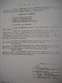 Initially, he cooperated with the new regime, but soon after had realized the defeats brought about by the Yugoslav Macedonism,[15] Brashnarov returned to the IMARO's ideas for pro-Bulgarian Independent Macedonia.[16] In 1948, being fully disappointed by the policy of the authorities, Brashnarov complained of it in letters to Joseph Stalin and to Georgi Dimitrov and asked for help, maintaining better relations with Bulgaria and the Soviet Union, and opposing the serbianization and de-Bulgarization of the Macedonian people.[6] He did so together with Pavel Shatev.[6] As a result, he was arrested in 1950 as a Cominform agent under the accusation of "organizing an illegal group to support the Soviet Union in its the conflict with Yugoslavia".[17] Afterwards he was imprisoned in Goli Otok labor camp where he died the following year.[18] Initially, Brashnarov was buried in the labor camp, but two years later his remains were transferred somewhere. His grave was found in 2011 in Zagreb, where he was reburied in a mass grave of prisoners from Goli Otok.