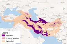 In Turkey, the leopard has been killed illegally in traps and through poison.[26][78] Several leopards are known of have been killed since 1974 in Beypazarı, Siirt Province, Diyarbakır Province and Tunceli Provinces.[23][79][80][81][82][83][84] Despite ongoing efforts to reforest Turkey, the country lacks a plan to reconnect fragmented forests as of 2020, which may further fragment leopard populations in the region.[85]
