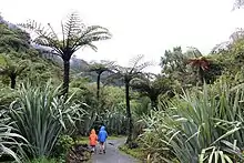 The Truman Track, located 3 kilometres (1.9 mi) north of Punakaiki, provides access from State Highway 6 to a headland via a short walk through coastal forest of ferns, nikau palms, podocarps and rātā, with flax nearer the coastline.[12]