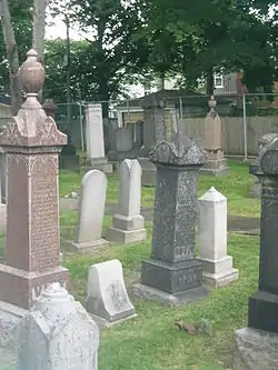 Pape Avenue Cemetery, officially known as Holy Blossom Cemetery, is the first Jewish cemetery in the city of Toronto, Canada. The small cemetery is now closed to new burials, and is mostly hidden within the residential neighbourhood of Leslieville.[1]