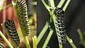 This caterpillar absorbs toxins from the host plants, and therefore tastes poor to bird predators.[13] The black swallowtail caterpillar has an orange "forked gland", called the osmeterium. When in danger, the osmeterium, which looks like a snake's tongue, everts and releases a foul smell to repel predators.[13]