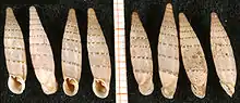 The shells of Papillifera papillaris are coiled sinistrally and, like other clausilids, extremely high-spired, with 10–11 whorls.[10]