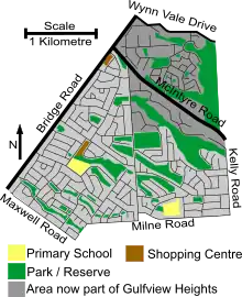 The boundary of Para Hills is defined by McIntyre Road and the Para Hills reserve to the north, Kelly Road to the east, Bridge Road to the west, and Maxwell Road and Milne Road to the south. The northern boundary moved south from Wynn Vale Drive in 2002 when Gulfview Heights was declared.