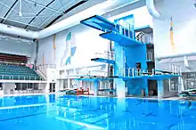 Swimming pool with multiple diving platforms