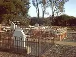 Located on Bolivar Road, Paralowie, the now-closed cemetery is the only reminder of the Burton Methodist Church (used to stand by the side of Burton Road), built-in 1915, closed in 1950 and later demolished, and now marked with a memorial stone. An earlier church built in June 1858 also existed here and was used as a school until the 1950s.[3] The first burial was that of George Diment, aged 10½ years in December 1866; burials continued until 1957, after which there was a substantial gap until the last burial in April 1971. Attempts have been made to restore the vandalised headstones in the cemetery because it is a site of historical significance.[4]
