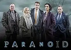 Paranoid is a British crime drama, which began broadcasting on ITV on 22 September 2016, and streaming internationally on Netflix in 2016. The eight-part series focuses on a group of UK detectives working for the fictional Woodmere police force attempting to solve the murder of a local doctor who is stabbed at a children's playground. During the course of their investigation, the detectives discover the murder has links to a German pharmaceutical company and they enlist the help of their German colleagues in Düsseldorf to find the killer.[2] Indira Varma, Robert Glenister, and Dino Fetscher star as main protagonists DS Nina Suresh, DC Bobby Day, and DC Alec Wayfield, respectively.[3]