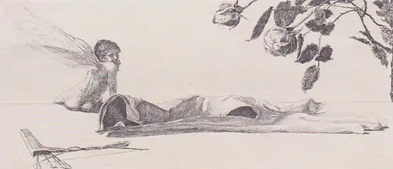 Paraphrase über den Fund eines Handschuhs, often referred to in English as Paraphrase on the Finding of a Glove, is a set of ten etchings by Max Klinger. The series of prints were made by twenty-one-year-old Klinger in 1877-78 and first exhibited at the Berlin Art Association in 1878. They were later exhibited in a mixed technique of engraving, etching, and aquatint in 1881. The etchings are a part of the symbolism movement and hold a story of love, death, and fantasy, which Klinger is most known for.