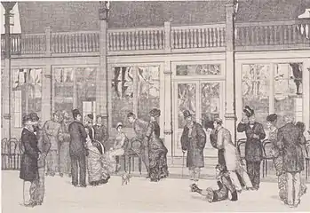 The cycle of etchings begins at a skating rink in Berlin where Klinger himself is in the etching and admires a young woman. As the story goes on, people are skating and the young woman happens to drop her glove. Klinger swoops in to pick it up, losing his hat in the process. The glove becomes a fetish item and possesses a power over Klinger. Then the story starts to change into imaginative dimensions in which the intimate and potently sexualized object triggers a series of elaborate visions of longing and loss, conveyed through hallucinatory distortions of scale and jarring juxtapositions.[1] The glove torments Klinger because he doesn't return it to the woman and keeps it to himself. Klinger gives the glove personality in the etchings. The glove will get away from Klinger multiple times in different scenes where he struggles to get it back. It also gives Klinger nightmares in the etching Anxieties, in the style of Goya. The glove eventually gets stolen from him in the night by a dreamlike creature in Abduction. In the last etching, Cupid, the viewer sees the glove lying on a table with Cupid sitting next to it.