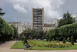 The Parc de Choisy (1937), like the Square Saint-Lambert in the 15th arrondissement (1933), was built on the site of a former gas factory. The designer was Édouard Crevel (1880-1969), who had become chief architect of the city of Paris in 1935. He was also the architect of the George Eastman Dental Institute (French: Institut dentaire George-Eastman), a dental college, next to the park. After World War II, he became architect of the Ministry of Reconstruction, rebuilding structures destroyed or damaged during the war.[1]