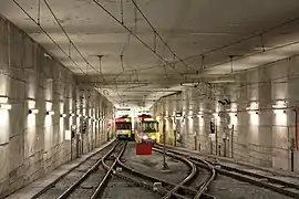 The short tunnel section south of the station where trams park before departure.
