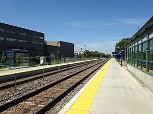 The Exo commuter rail operates a station immediately adjacent to the historic building. Parc station is part of Exo's Saint-Jérôme line. The Exo station's platforms are built along the main line; the space between the old Jean-Talon railway station building and the railway line, where the original platforms were located, is now occupied by a Provigo Le Marché supermarket.[7]