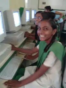In the mornings the girls attend academic classes in subjects including History, Mathematics, English and Music - the school curriculum follows that set by the U.P. Board. In 2004, through a grant from the Public Affairs Office of the US Embassy in Delhi, the school was able to set up a computer lab for the girls to have computer classes twice a week. Through a major grant from Cargill's corporate responsibility NGO (based in Switzerland) the physical size of the school was increased by a third to include a science wing. This will allow students to be educated at a higher level (inter-college) in the sciences to include IT. In addition to the regular teaching staff, the school also enlists volunteers to introduce and implement forward-thinking teaching methods and to assist in teaching English as well as other subjects.