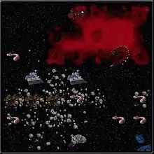 Raw materials can be harvested in space. Each tile, or "field", has a raw material associated with it; for example, open space contains hydrogen fuel, and asteroid fields contain ore. Each field holds a maximum of 500 units (tons) of its respective material. However, the more a field is harvested, the slower the field regenerates, and the less can be harvested from the field unless it is given sufficient time to regenerate. This often leads to fields that are "strip-mined", meaning raw materials are very scarce or in insufficient quantities to be harvested. Strip-mined fields are one of the most common difficulties encountered by players in the more populated areas of the universe. Also, players who strip-mine may find themselves an enemy of other pilots.[11]