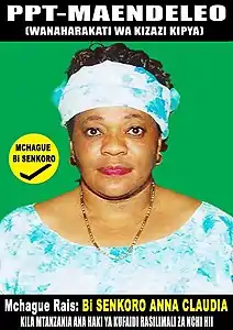 - Anna Senkoro: The late member of the Progressive Party of Tanzania-Maendeleo (PPT-Maendeleo), who became the first woman in Tanzanian history to run for president.[23][24]