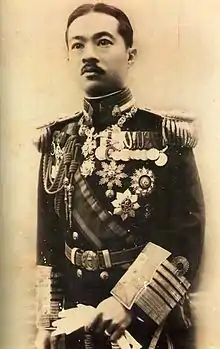 Marshal-Admiral Paribatra Sukhumbandhu, Prince of Nakhon Sawan (RTGS: Boriphat Sukhumphan; Thai: สมเด็จพระเจ้าบรมวงศ์เธอ เจ้าฟ้าบริพัตรสุขุมพันธุ์ กรมพระนครสวรรค์วรพินิต) (1881–1944), was a highly influential Thai military officer and government minister in the early 20th century during the last years of the absolute monarchy. He served as Chief of Staff of the Royal Thai Army, Commander of the Royal Thai Navy, Naval Minister, Army Minister, Defense Minister, Interior Minister, and as a Privy Counsellor to both King Vajiravudh and King Prajadhipok.