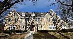 Parish Apartments, also known as the Sigma Pi Fraternity House and the St. Thomas More Parish Center, is a historic building located in Iowa City, Iowa, United States. Located in the Manville Heights neighborhood, it was built as a fraternity house for Sigma Pi in the 1929. The design for the three-story stone Tudor Revival structure is attributed to Madison, Wisconsin architect Myron Edwards Pugh. It was built at the height of fraternity house construction at the University of Iowa.[2] The Xi Psi Phi fraternity joined Sigma Pi in the house in 1936, and Psi Omega joined two years later. The residency of these other fraternities was most likely due to a decline in enrollment during the Great Depression.[2] It was not enough, however, as First Trust and Savings Bank of Davenport acquired the building at a sheriff's sale in 1943.