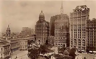 The New Yorker Staats-Zeitung moved to its own building at 17 Chatham Street at almost the same time as the Times moved into its new building.[34][35]