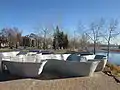 In 2009 the City of Calgary began plans for the Parkdale Plaza which opened in 2014 on the Bow River trail at the end of 34A St. NW. The Plaza offers views of the Douglas Fir Trail and Edworthy Park to the south and Calgary's iconic cluster of downtown high rises to the east. It is situated at the outfall of the City’s underground stormwater infrastructure that empties into the Bow River. In 2007 Calgary founded the Utilities and Environmental Protection (UEP) Public Art Plan,[29] and this specific site was identified as a possible ceremonial site in the city's Landscape of Memory plan and a 'place-making' opportunity in the Outfalls Project, a significant project in the Calgary's public art plan to highlight its utility infrastructure through art. The city's storm drainage system helps prevent flooding by "diverting rain and snowmelt into the nearest river or creek through curbside drains and underground pipes" and slows down the flow through retention ponds then finally empties into the rivers through outfalls.[30]