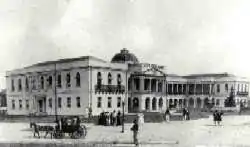 The Parliament Building replaced the former building of the Court of Policy.[1] The building was built on a foundation of greenheart logs. The foundation stone was laid in 1829 and, on 21 February 1834,[1] the structure, stuccoed to resemble stone blocks, was completed.