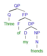 In 1995, Guillermo Lorenzo proposed a partitive (π), which is equivalent to the meaning of "out of" in English, is a functional category by itself and projects to a phrasal level. A partitive phrase (πP) is selected by the Numeral (Num) and in turn the partitive head (π) selects the following DP. A Spanish example is shown below:[1]