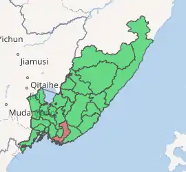 Partizansky District (Russian: Партиза́нский райо́н) is an administrative[1] and municipal[6] district (raion), one of the twenty-two in Primorsky Krai, Russia. It is located in the south of the krai and borders with Chuguyevsky District in the north and northeast, Lazovsky District in the east, the territory of Nakhodka City Under Krai Jurisdiction and the Sea of Japan in the south, the territory of Partizansk Town Under Krai Jurisdiction and Shkotovsky District in the west, and with Anuchinsky District in the northwest and north. The area of the district is 4,253.9 square kilometers (1,642.4 sq mi).[3] Its administrative center is the rural locality (a selo) of Vladimiro-Alexandrovskoye.[2] Population: 30,238 (2010 Census);[4] 31,666 (2002 Census);[8] 29,455 (1989 Census).[9] The population of Vladimiro-Alexandrovskoye accounts for 18.9% of the district's total population.[4]