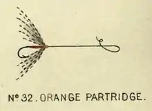The Partridge and Orange is an artificial fly commonly categorized as a wet fly or soft hackle and is fished under the water surface. The fly is a very well known fly with its roots set firmly in English angling history. It is an impressionistic pattern fished successfully during caddis hatches and spinner falls.[1] The Partridge and Orange is traditionally a trout and grayling pattern but may be used for other aquatic insect feeding species.
