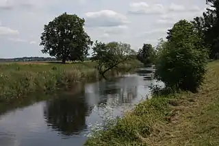 The Pasłęka (German: Passarge) is a river in northern Poland that debouches into the Baltic Sea on the Vistula Lagoon near Braniewo. It flows through the Olsztyn and Mrągowo lakelands, and through Gdańsk Coastal Area.
