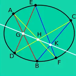 - Interactive demo of Pascal's theorem (Java required) at cut-the-knot