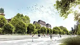 Paseo del Bajo included a park, named "Parque del Bajo", located between Belgrano and Corrientes avenues (north-south) and Paseo Colón and Huergo avenues (west-east), with an extension of 102,000 m2.[6]