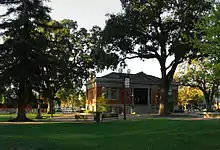 James and Daniel Blackburn donated two blocks to the city for a public park to be used for the pleasure of its citizens and visitors. By original deed, the land was to revert to the donors if used for any other purpose than a public park. Two exceptions were made: allowing the building of the Carnegie Library, and the conversion of the library to a museum. The grounds were laid out by a Mr. Redington and a planting day was held when each citizen set out his own donation. Originally, the whole park was hedged in by a fence of cactus, and in 1890 a bandstand was built with money raised by private theatricals.