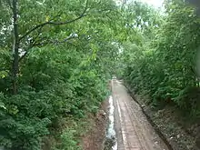 In 2007, NJ Transit stated construction of the Passaic-Bergen Passenger Service Restoration Project could begin in early 2009 and last approximately 3 years; estimated the cost to be $156 million. In a memorandum of understanding NJT agreed to pay NYSW more than $20 million for a 75-year easement for trackage rights on its freight line.[19][20] The scope of the project ran from Hawthorne to Hackensack. It engaged SYSTRA for planning and design.[21][19] The line would run for approximate 8.3 miles in a generally east-west alignment, creating a cross-county corridor running between Hawthorne, where transfer to the Main Line would be available, and Hackensack. There would be five stations in Paterson, one station in Elmwood Park. It would pass through Saddle Brook, Rochelle Park and Maywood, without stops. Two stations were planned for Hackensack, including a terminus at State Street.[21][22] A new track would be laid for the line along the ROW, the existing track reserved for freight. The river crossing at Hawthorne would remain single track and shared.[23] While outside of the scope of the project, in 2013 the city of Hackensack replaced a rail trestle at River Street close to the proposed terminus with a contingency for a future additional track and passenger platform.[24]