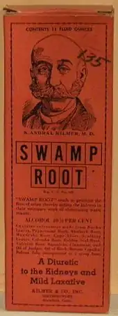 Many promoters desired to lend their preparations a sense of exoticism and mystery. Unlikely ingredients such as the baobab fruit in Oxien were a recurring theme. A famous patent medicine of the period was Dr. Kilmer's Swamp Root; unspecified roots found in swamps had remarkable effects on the kidneys, according to its literature.