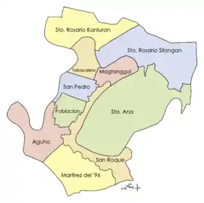 Before 1770, Pateros was only a barrio of Pasig until the Spanish Governor-General of the Philippines issued a decree making Pateros an independent municipality. The town was then composed of five barangays (villages): Aguho, San Roque, Santa Ana, Santo Rosario (Santo Rosario-Silangan and Santo Rosario-Kanluran), and Mamancat (now part of Fort Bonifacio).