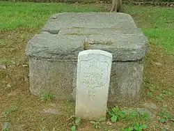 There is a grave site for chief Pathkiller (died January 8, 1828)[3] in the woods just outside the fenced Garrett family cemetery[4] next to the Coosa River in Centre, Cherokee County, Alabama.[5][6] This is in close proximity to his known residence at the time of his death and near the former Turkeytown, where he was chief. There is also a second, monument-style table-tomb burial site for a Colonel Pathkiller (died 1827)—which was previously recorded in the region as a tomb of an "unknown Indian"—located in the present day Calhoun, Georgia area, at the site of the old Cherokee town of New Echota.[5]