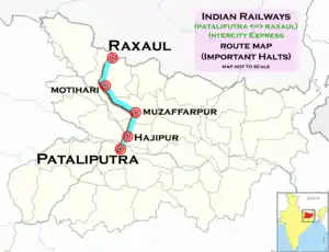 The 15201 / 02 Intercity Express is an Express train belonging to Indian Railways East Central Railway zone that runs between Patliputra Junction and Raxaul Junction in India.