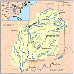 The Patoka River (Pronounced, PaTohKah) is a 167-mile-long (269 km)[1] tributary of the Wabash River in southwestern Indiana in the United States. It drains a largely rural area of forested bottomland and agricultural lands among the hills north of Evansville.