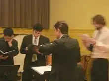 He has collaborated with Boston Musica Viva numerous times—most recently in 2019, when they premiered The Druddigon, a ballet with a libretto by noted young adult author M.T. Anderson.[11] Another collaboration with the ensemble, Machine Language for Beginners, explores humanity's complicated history with machines and artificial intelligence;[12] it earned him the St. Botolph Club Foundation's 2015 Emerging Artist Award.[13]