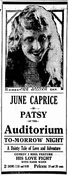"Patsy" movie ad with June Caprice in Motion Picture News