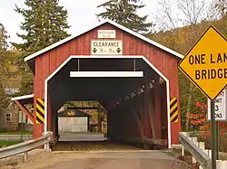 The Patterson Covered Bridge No. 112 is a historic wooden covered bridge located at Orange Township in Columbia County, Pennsylvania. It is an 81.66-foot-long (24.89 m), Burr Truss arch bridge with a tarred metal roof constructed in 1875. It crosses Green Creek. It is one of 28 historic covered bridges in Columbia and Montour Counties.[2]