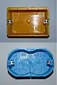 A pattress or pattress box or fitting box (in the United States and Canada, electrical wall switch box, electrical wall outlet box, electrical Ceiling box, switch box, outlet box, electrical box, etc.) is the container for the space behind electrical fittings such as power outlet sockets, light switches, or fixed light fixtures. Pattresses may be designed for either surface mounting (with cabling running along the wall surface) or for embedding in the wall or skirting board. Some electricians use the term "pattress box" to describe a surface-mounted box, although simply the term "pattress" suffices. The term "flush box" is used for a mounting box that goes inside the wall, although some use the term "wall box". Boxes for installation within timber/plasterboard walls are usually called "cavity boxes" or "plasterboard boxes". A ceiling-mounted pattress (most often used for light fixtures) is referred to as a "ceiling pattress" or "ceiling box". British English speakers also tend to say "pattress box" instead of just "pattress". Pattress is alternatively spelt "patress" and Wiktionary lists both spellings. The word "pattress", despite being attested from the late 19th century, is still rarely found in dictionaries. It is etymologically derived from pateras (Latin for bowls, saucers).[1][2][3] The term is not used by electricians in the United States.