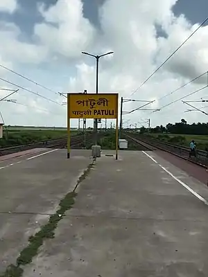 Patuli railway station is a railway station on Bandel–Katwa line connecting from Bandel to Katwa, and under the jurisdiction of Howrah railway division of Eastern Railway zone. It is situated beside State Highway 6 at Santoshpur Pila, Patuli, of Purba Bardhaman district in the Indian state of West Bengal.[1] It serves Patuli and surrounding area. Few EMUs and passengers trains stop at Patuli railway station.[2]