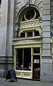 Paul A. Young Fine Chocolates opened their first chocolaterie, in Camden Passage, Islington, in 2006.[6] A second shop would open the following year in The Royal Exchange, and a third on Soho's Wardour Street would follow in June, 2011.[8] The Royal Exchange store closed c. August 2019 due to rent increases.[9]