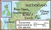 The manuscript history of the Rosses of Balnagown states that a King of Denmark had three sons who came to the north of Scotland: "Gwine", "Loid", and "Leandres".[14] The manuscript states that Gwine conquered the braes of Caithness; Loid conquered Lewis, and was the progenitor of the MacLeods; and Leandres conquered "Braychat".[14] The 19th century antiquary F. W. L. Thomas noted that Braychat referred to Strathcarron. Thomas considered the "King of Denmark" to be mythological, and proposed that the king likely refers to Sveinn Ásleifarson, a prominent character in the mediaeval Orkneyinga saga. Thomas noted that in the saga, Sveinn's brother as named Gunni; Sveinn's son was named Andreas. Thomas also noted that in the saga, Sveinn was the friend of a man named Ljótólfr, from Lewis;[15] and Thomas considered Ljótólfr to have been an ancestor of the MacLeods.[16][17] According to W. F. Skene, Gwine was probably meant to refer to the eponymous ancestor of Clan Gunn.[18] According to Sellar, Denmark should not be taken literally: in this context, Denmark likely stands for Scandinavia.[19]